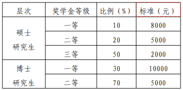 第七条 研究生学业奖学金设置: